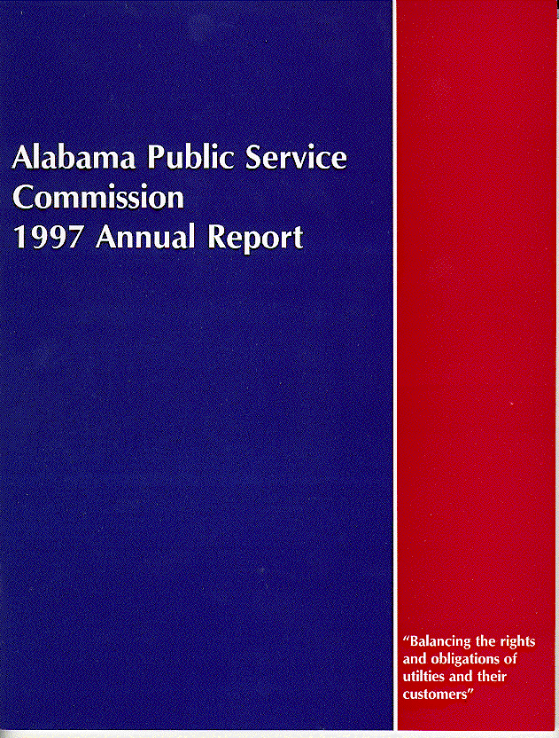 activities and accomplishments of the Alabama Public Service Commission during the period October 1, 1996, to September 30, 1997, are presented in this annual report.The Alabama Public Service Commission is a quasi-judicial regulatory body whose jurisdiction, powers and duties are delegated to it by the Alabama Legislature. The Commission derives its authority from the Code of Alabama, 1975, Sections 24-1-28, 10-2-231, 10-5-3, 10-5-4, 10-5-7, 11-50-268, 11-50-269, 11-50-270, 37-1-32, 37-2-3, 37-2-171, 37-3-7, 37-4-60, 37-4-82, 37-4-108, 37-9-8, and 37-9-9.
